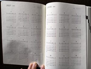 「ほぼ日5年手帳」は“手帳”という名前になっていますが、実際は日記帳なので、最初に5年分の年間カレンダーが載っているものの、スケジュール管理にはあまり向いていません。