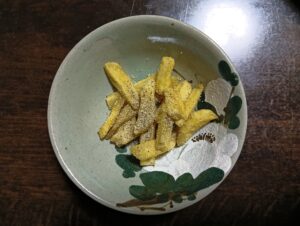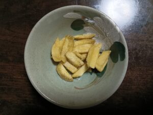 食感はカリサクッとしていて歯ごたえがよく、昆布をほんのり感じる和風のお味。そして、後から感じるどこかヒリッとした山椒の味わいと香り…。