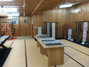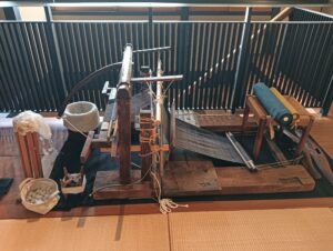 館内には機織り機もあり、ものづくりの現場をより身近に感じられました。