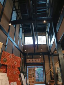 思わず見上げてしまうほど天井が高い京町屋づくりの空間に、色鮮やかな着物が目に飛び込んできます。