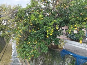 川沿いの生えている柑橘の木