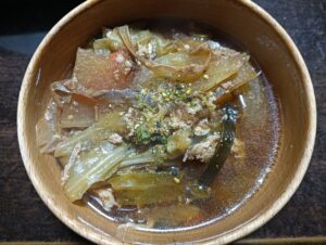 夕飯の豚汁にかけてみました。