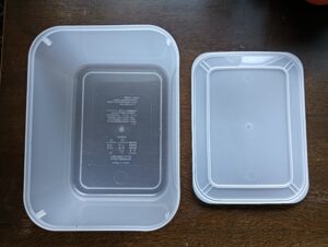 わが家では100円ショップで購入した大きめのタッパー(24×18×13cm)を使用。