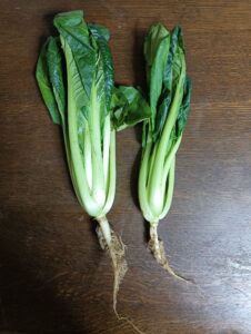 そんな小松菜ですが、「立派な根っこをそのまま捨てるのはモッタイナイ」という節約家魂がうずいて仕方ありません。